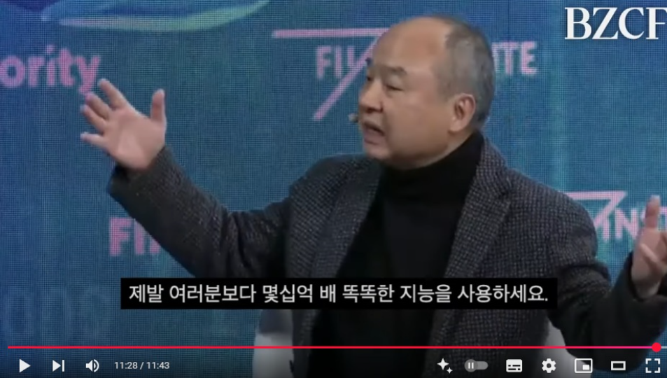 마지막으로, 손정의는 AI가 인간보다 몇십억 배 더 똑똑한 지능을 가질 수 있다는 점을 강조하며, 이를 적극적으로 활용해야 한다고 말합니다. 이는 단순히 문제를 해결하는 것을 넘어, 새로운 질문을 던지고 혁신적인 해답을 찾는 데 도움이 될 수 있습니다.